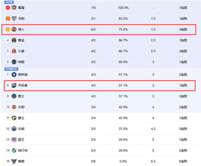 NBA最新排名!湖人4连胜追上第二,快船给勇士送温暖,火箭没掉队